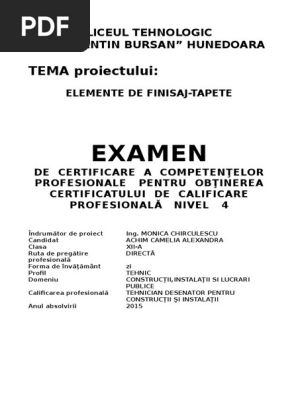 De certificare a competentelor profesionale nivel 4. Se va acorda prioritate proiectelor. Acord de valorificare activitații online. La examenul de certificare a calificării profesionale din învăţământul profesional cu durata de 3 pot participa. Examene de certificare a calificarii profesionale de nivel 3, 4, 5.