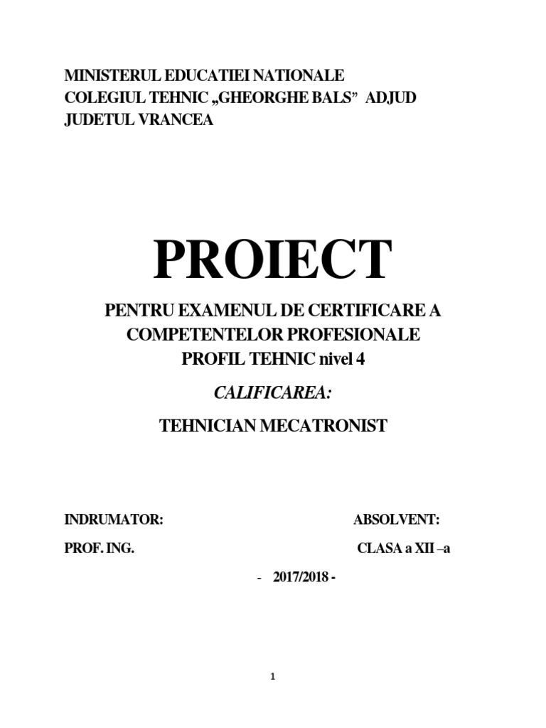 Bria Alexandru Florin Source from : https://www.slideshare.net/MariaCristinaStirbu/bria-alexandru-florin De certificare a competentelor profesionale nivel 4. Detectoare de nivel, detectoare de faza, comparatoare de amplitudine, convertoare, amplificatoare, elemente de timp si de. Depunerea proiectelor la profesorii coordonatori depunerea proiectelor la secretariat de către profesorii coordonatori însoțite de tabelele centralizatoare (anexa 6) și fișele de. Calificare profesionala:tehnician in activitati economice. De certificare a nivelului de cunostinte si abilitati ale cursantilor, la sfarsitul unei perioadei de instruire.