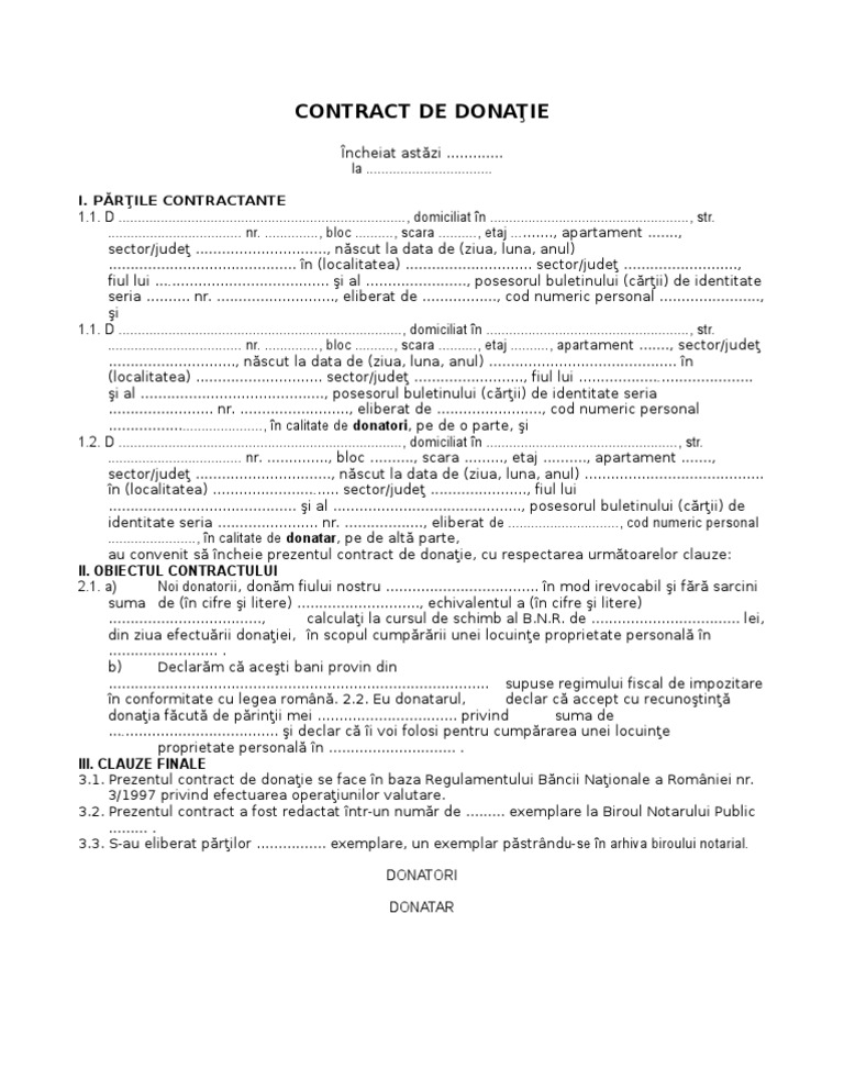 Acest produs se livrează electronic, adică se descarcă din contul de client şi nu se trimite prin postă / curier. Start studying contract de donatie. Partile se obliga sa deruleze contractul de donatie numai in.