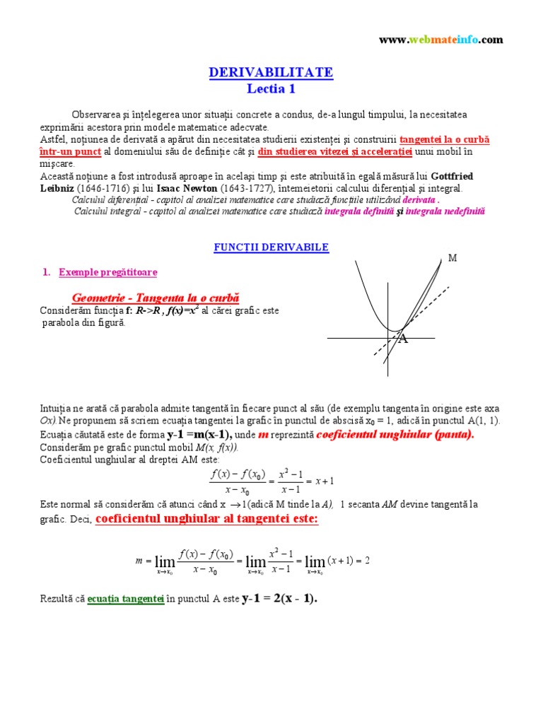 Scrieti ecuatia tangentei la graficul functiei f in punctul x0 = 1. Avem si ecuatia ceruta este. Pentru functia ƒ(x) = , scriem ecuatia tangentei in punctul x0 = 1.